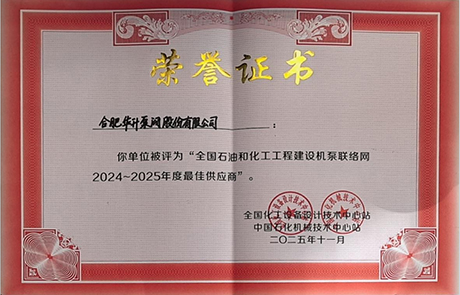 شرکت پمپها و شیرآلات هفی هواشنگ (Hefei Huasheng Pumps & Valves Co., Ltd.)اخیراً اعطا شده است «بهترین تأمینکننده»افتخار توسط شبکه ملی پمپهای مهندسی نفت و شیمی برای دوره ۲۰۲۴-۲۰۲۵. این تقدیر نشان دهنده تخصص فنی قوی، کیفیت قابل اعتماد محصول و خدمات برجسته این شرکت در زمینه تجهیزات سیالات برای صنایع نفت و شیمی است.