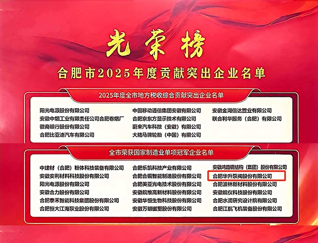 Hefei Huasheng Pumps & Valves Co., Ltd. has been recognized as one of Hefei’s Outstanding Contributing Enterprises for 2025, following an announcement made at the city’s Science and Technology Innovation Conference on February 24.